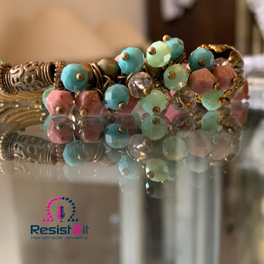 This bracelet is a symbol of abundance. Bright and beautiful colors coming out of the chalice and spread over the fan...