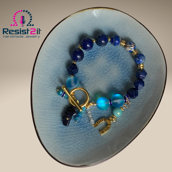 So... blue because we are sad. Shiny light blue beads because the horses shine a light on people's lives.